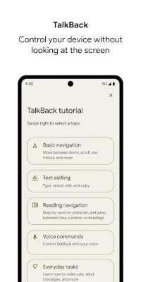 Η Σουίτα Προσβασιμότητας Android προσφέρει μια συλλογή εφαρμογών για να χρησιμοποιείτε τη συσκευή σας. Βελτιώστε την εμπειρία χρήσης χωρίς οπτική επαφή ή με συσκευή-διακόπτη, κάνοντας το Android προσβάσιμο σε όλους.