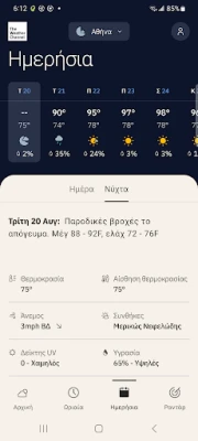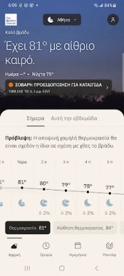 Θέλετε να είστε πάντα ένα βήμα μπροστά από τον καιρό, γνωρίζοντας κάθε αλλαγή πριν αυτή σας επηρεάσει; Το The Weather Channel είναι ο απόλυτος σύμμαχός σας για ακριβή πρόγνωση και άμεσες ειδοποιήσεις, οπουδήποτε κι αν βρίσκεστε. Αποκτήστε την σιγουριά που προσφέρει η λεπτομερής ενημέρωση για τις καιρικές συνθήκες στην περιοχή σας. Σχεδιάστε με αυτοπεποίθηση τις δραστηριότητές σας έως και 15 ημέρες εκ των προτέρων, χάρη στην αξιοπιστία των δεδομένων που παρέχει το The Weather Channel, εξασφαλίζοντας ότι είστε πάντα προετοιμασμένοι.