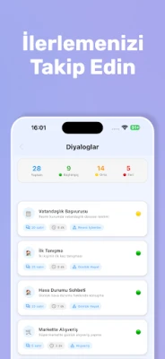 Ανακαλύψτε μια πληθώρα διαδραστικών διαλόγων σχεδιασμένων να αναπαράγουν αυθεντικές καθημερινές συζητήσεις. Από την παραγγελία σε ένα εστιατόριο και την γνωριμία με νέους ανθρώπους, μέχρι τις αγορές και την πλοήγηση στην πόλη, θα βιώσετε τη γλώσσα όπως χρησιμοποιείται στην πραγματική ζωή. Με την υποστήριξη ομιλούμενης προφοράς, θα τελειοποιήσετε την άρθρωση σας και θα αποκτήσετε την αυτοπεποίθηση να εκφράζεστε σωστά. Το περιεχόμενο είναι οργανωμένο θεματικά σε κατηγορίες όπως "Οικογένεια", "Φαγητό", "Επαγγελματική ζωή" και πολλά άλλα, εξασφαλίζοντας μια δομημένη και ολοκληρωμένη προσέγγιση στη μάθηση.