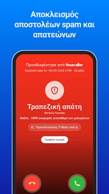 Αποκτήστε τον απόλυτο έλεγχο στις τηλεφωνικές σας επικοινωνίες. Με την υποστήριξη μιας δυναμικής κοινότητας εκατομμυρίων χρηστών παγκοσμίως, το Truecaller μεταμορφώνει την εμπειρία της τηλεφωνικής επικοινωνίας, παρέχοντας την απόλυτη λύση για να επαναφέρετε την ηρεμία και την αποτελεσματικότητα στις καθημερινές σας κλήσεις και μηνύματα. Αναγνωρίστε άγνωστες κλήσεις, φιλτράρετε ανεπιθύμητα μηνύματα και συνομιλήστε με ασφάλεια, όλα μέσα από μια ενιαία, έξυπνη πλατφόρμα.